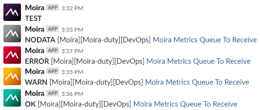 By default Slack sender won’t change default icon configured for your bot. To use state-specific icons in notifications: