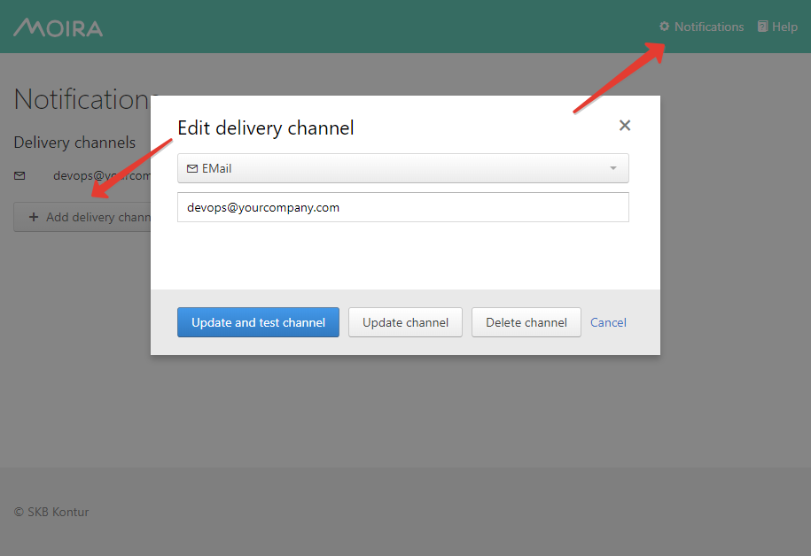If your Moira installation is configured with separate user accounts, you will see only your channels and subscriptions on this page. Otherwise, every user will see the same page with the same channels and subscriptions.